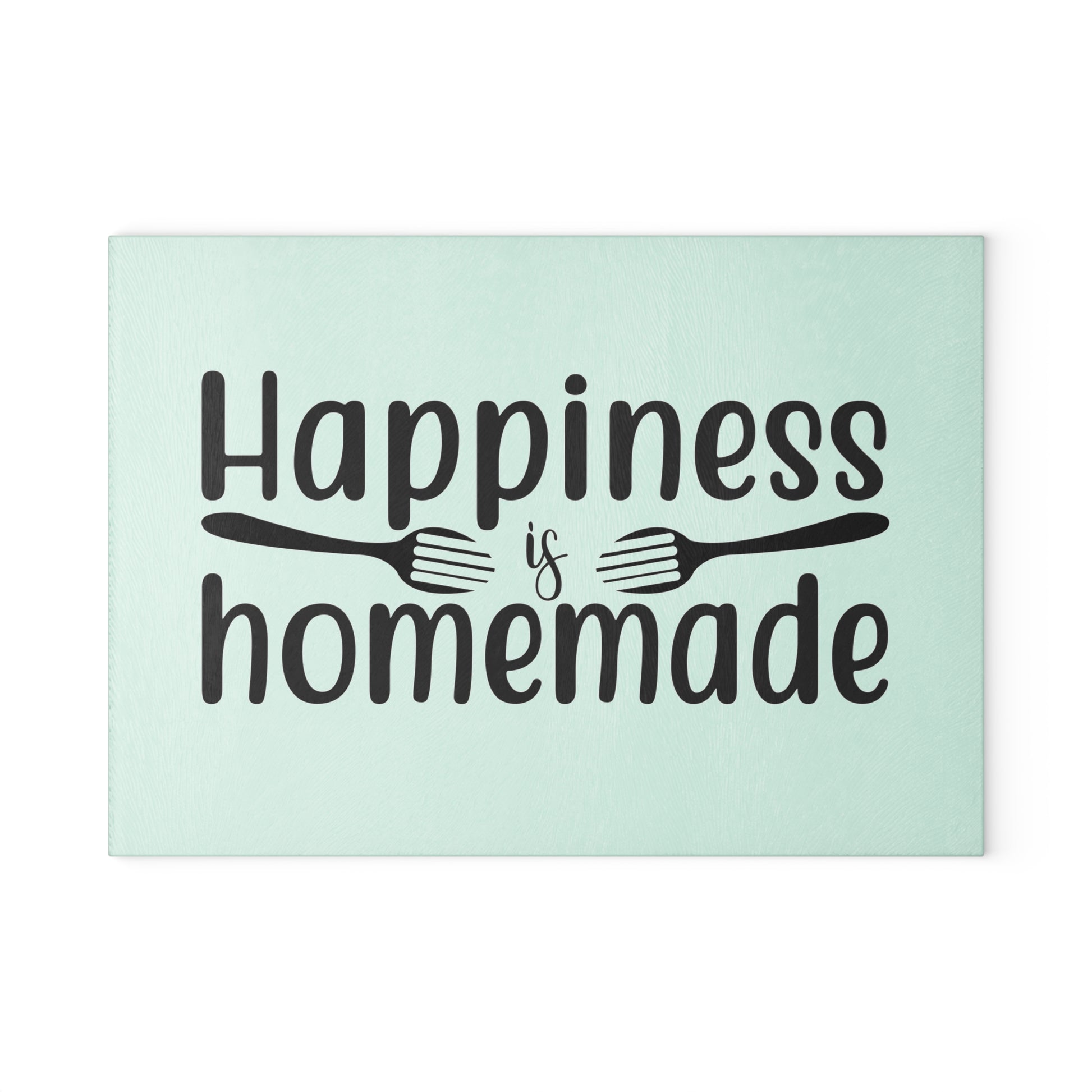 Happiness is Homemade Glass Cutting Board | Kitchen Quote, Mint Background